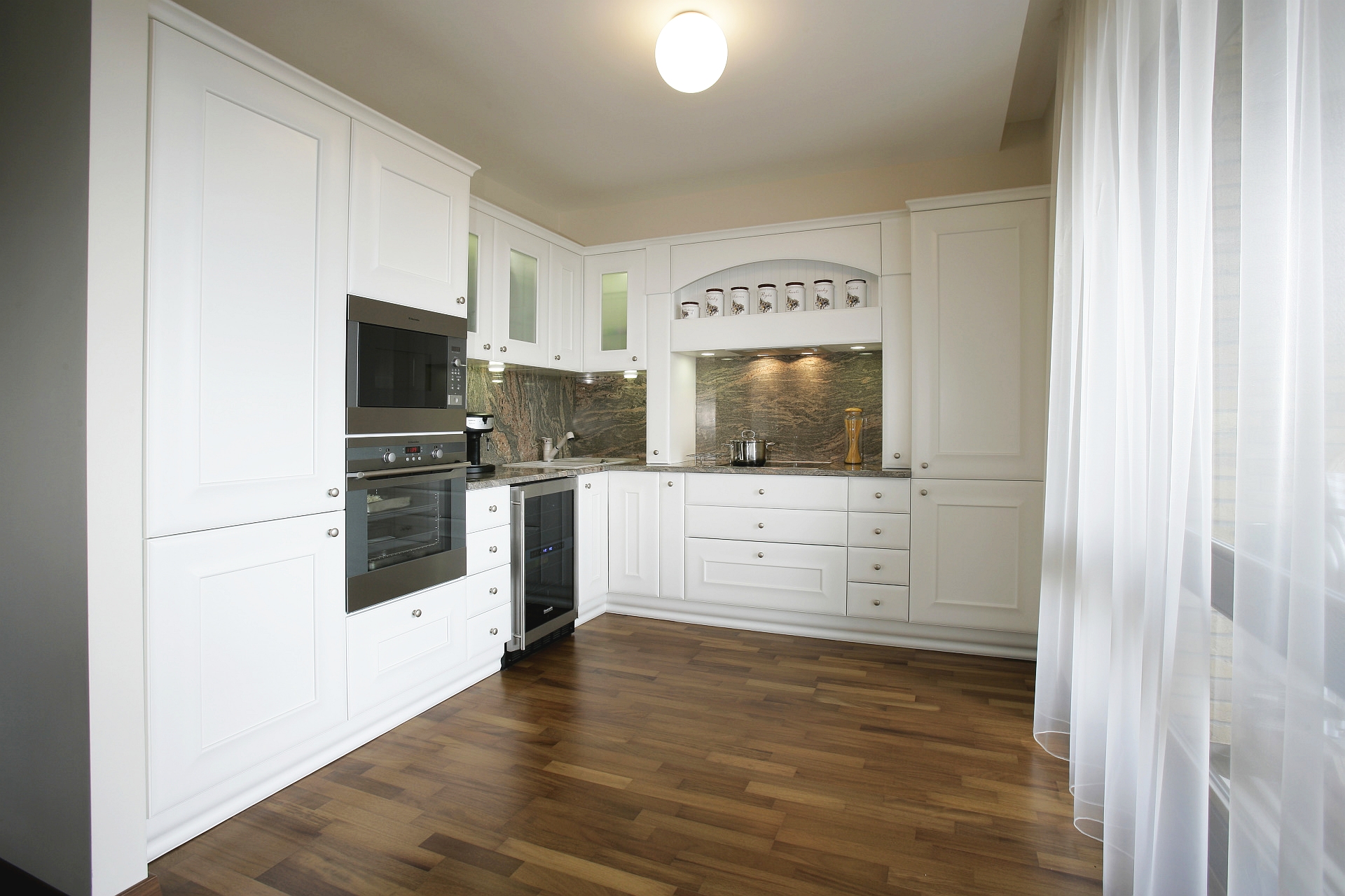 Diferite rafturi, unități deschise elegante, cornișă și șine decorative, uși în cadru din lemn masiv cu o gamă de panouri centrale, furnir sau inserții din sticlă opționale cu montante decorative vă ajută să păstrați și să vă organizați vasele de gătit.